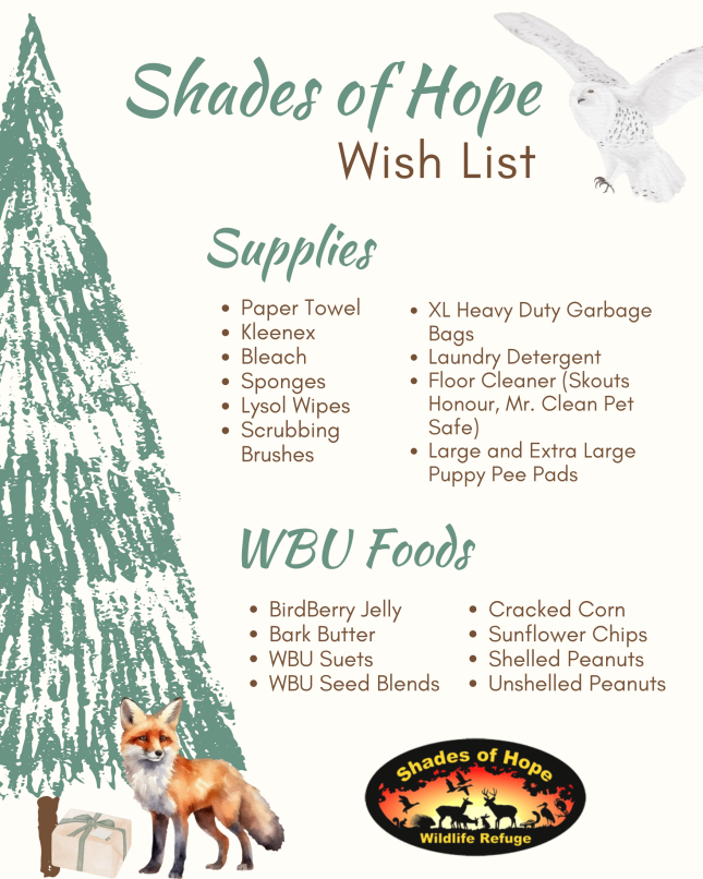Wild Birds Unlimited Newmarket is hosting a Food & Supply Drive all month long in support of Shades of Hope Wildlife Refuge, a licensed wildlife rehabilitation centre located in Georgina, ON. Each year, their dedicated team cares for hundreds of injured, sick, and orphaned wild animals — helping them heal and return to their natural habitats. 🦝